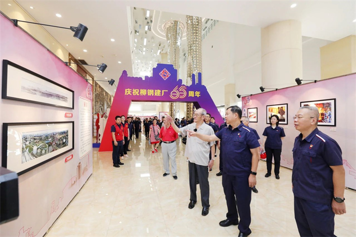 会前,李斌、阎骏等集团领导与1958年入厂老职工代表,党内先进代表,劳模代表等各界别人士代表先后参观了钢铁先锋党员淬炼线、柳钢展览馆以及柳钢集团65周年发展历程图片及书画摄影作品展。