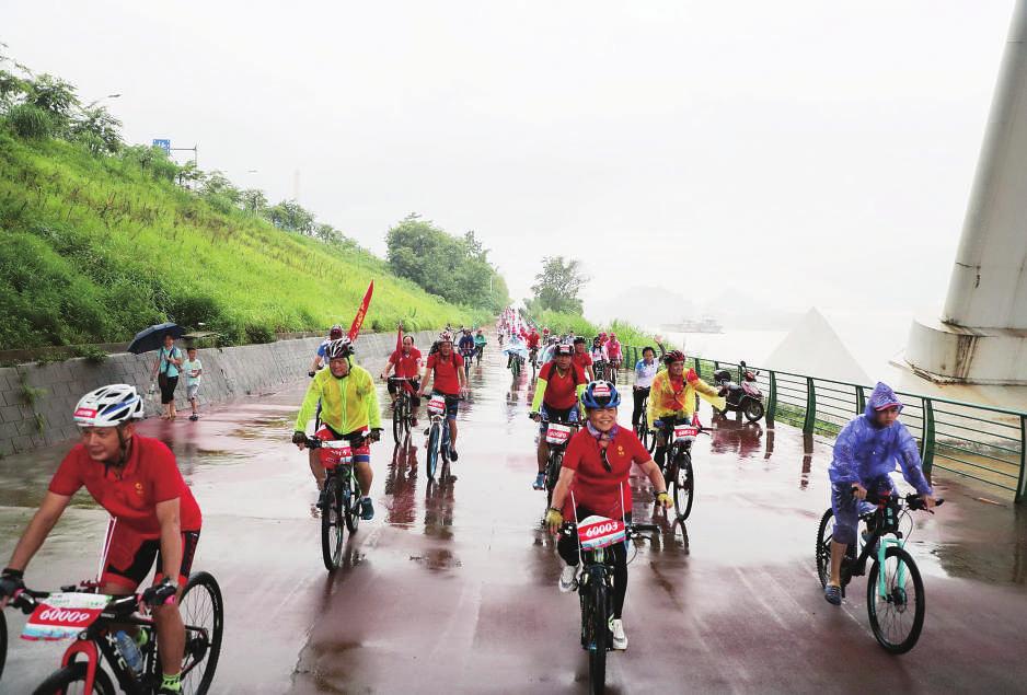在短暂的热身运动后,骑行活动正式开始。韩宗桂等领导带队率先出发,各支骑行队伍紧随其后,一条红色的火焰瞬间在柳江河畔蔓延开来。骑手们克服雨天路面湿滑的困难和考验,用手去擦拭流入眼睛的雨水,避免影响视线。大家在骑行过程中相互鼓舞、相互扶持,不抛弃、不放弃,将柳钢人团结互助、不畏艰险的精神发扬光大,参与的职工全部都顺利完成了此次骑行。